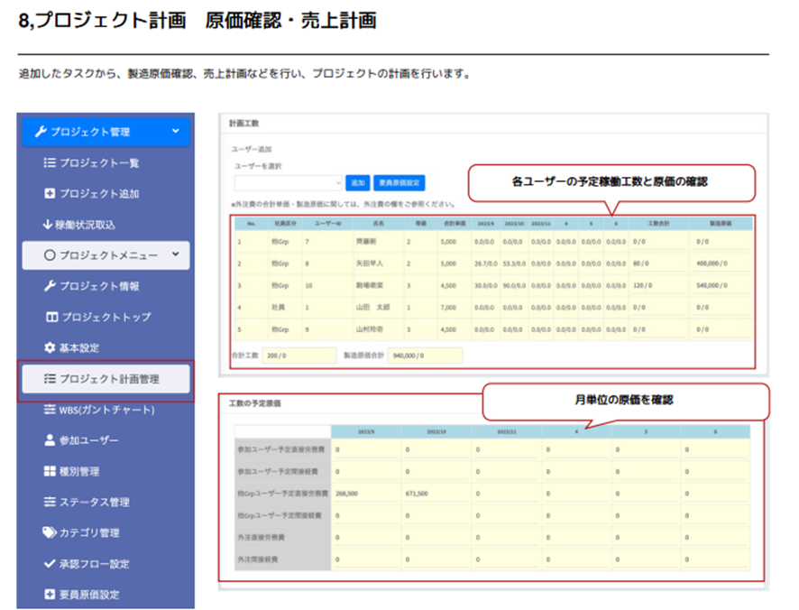 - 工数データをもとにプロジェクト原価を算出