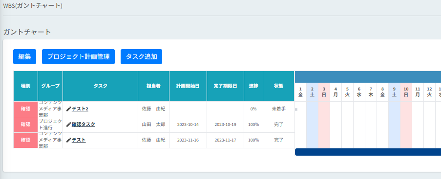 ✔ プロジェクト全体の進行状況を俯瞰できる